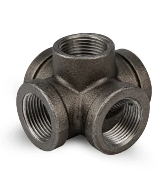 Black Malleable Iron 4 Way Tee / Joint Connectors